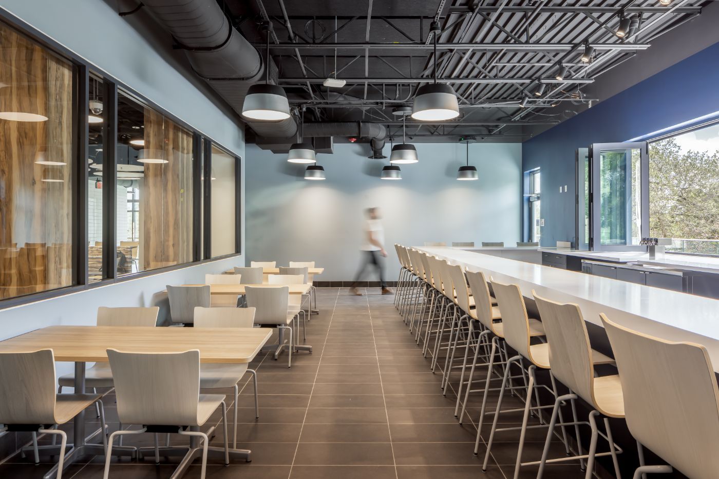 The new student union serves as a vibrant hub of activity, featuring a full-service dining hall, a grab-and-go café for meals on the move, an indoor/outdoor Rathskeller bar perfect for social gatherings, and the official STU spirit store.