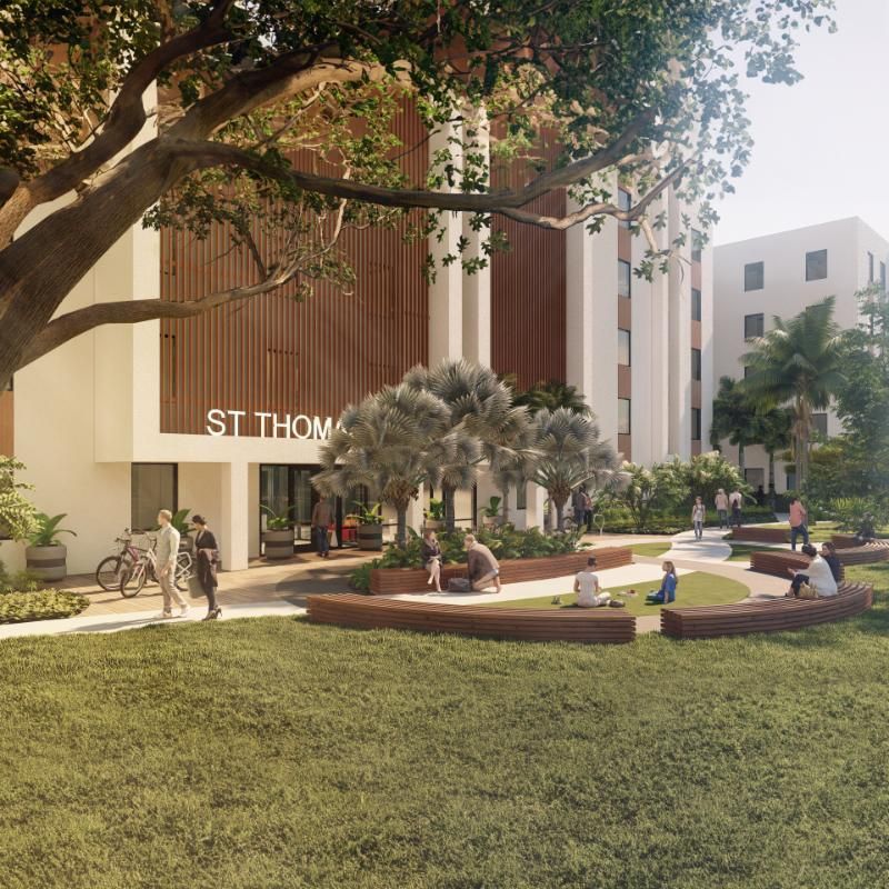 The new residence hall at St. Thomas University marks UHS’s third project on the campus, delivering 545 beds across 121,000 square feet and standing at 5 stories.